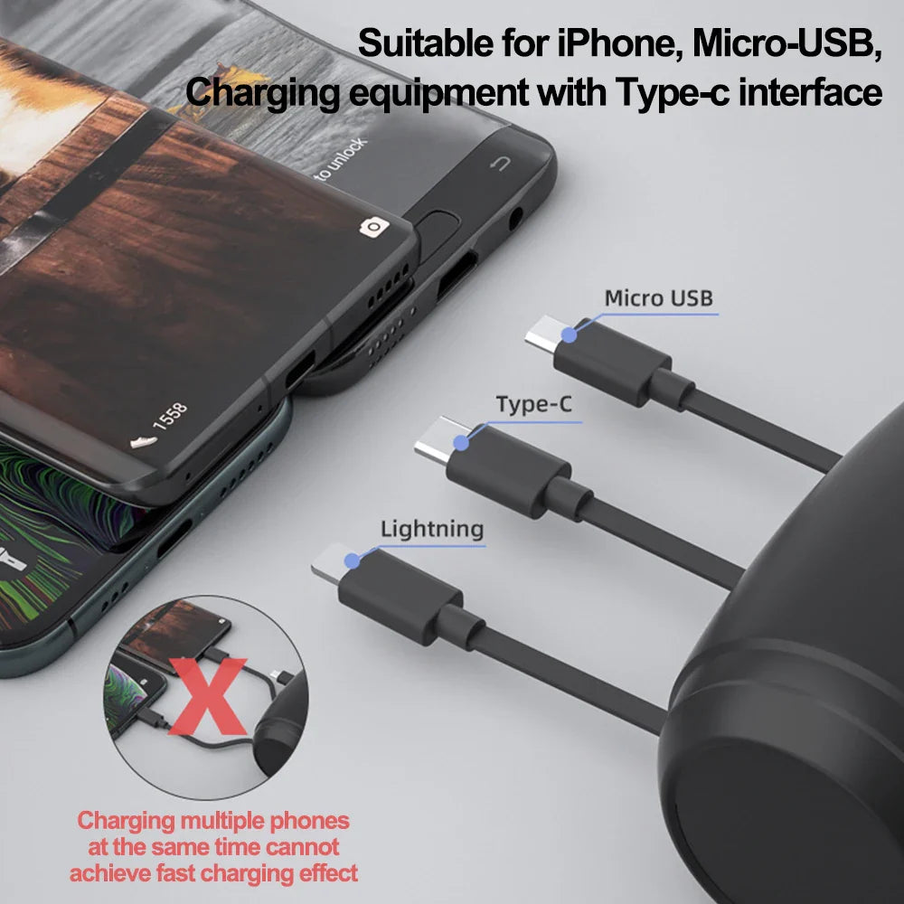 ✔ Tre infällbara kablar (3-i-1)